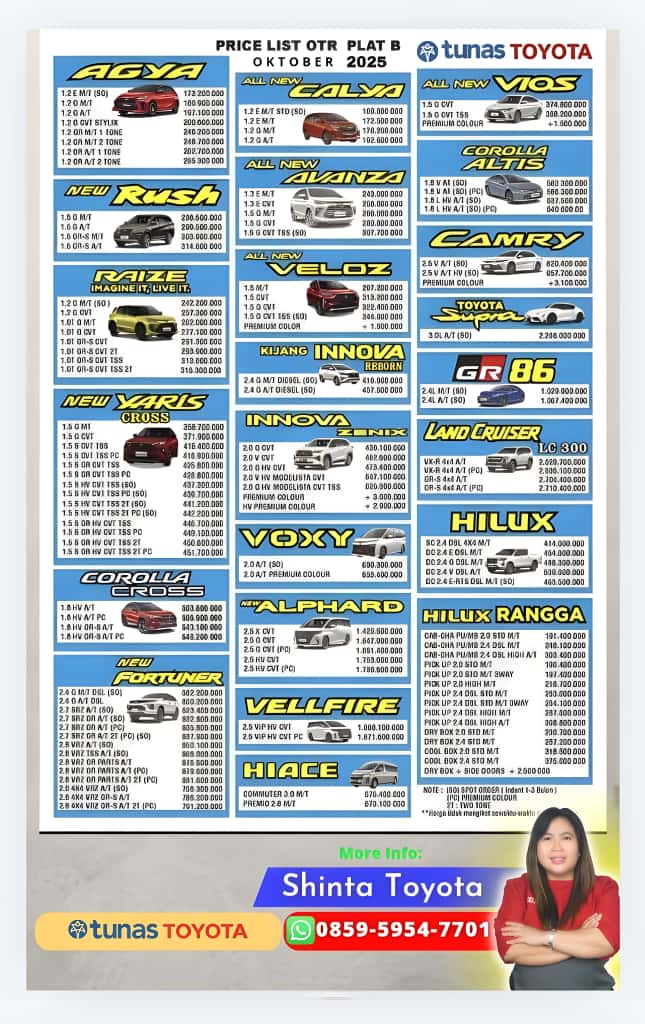 DAFTAR HARGA TOYOTA AREA DEPOK & JAKARTA (SEPTEMBER – OKTOBER 2025)